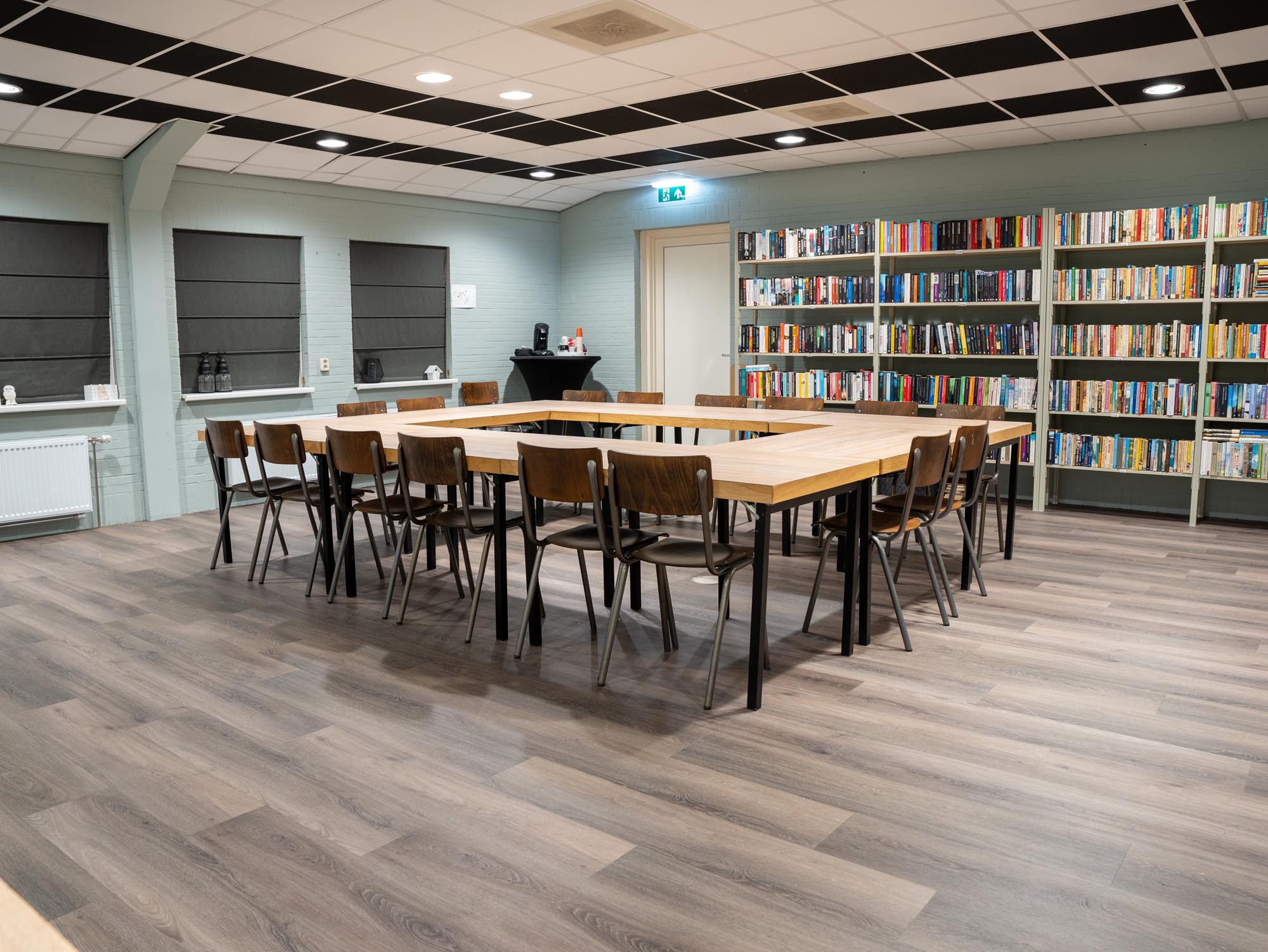 De bieb was eerst in een andere ruimte, maar verhuisde naar een grotere plek.